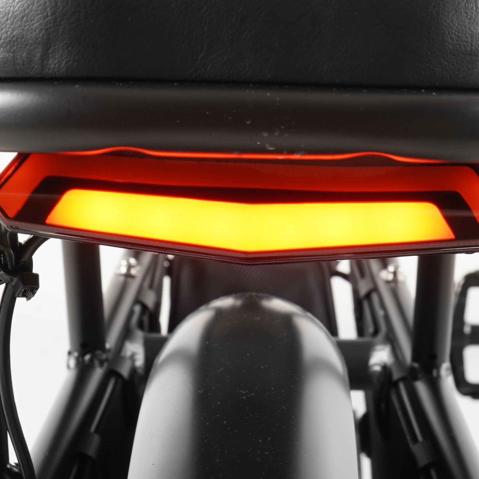 Equipped with a formidable 750W brushless motor (with a responsive peak output of 1,300W), the HQ20 makes conquering deliveries or exploring new trails a piece of cake. The adjustable pedal assist lets you decide how much help you want, capable of making those long rides feel like a leisurely stroll. Plus, it’s packed with safety features including a headlight, taillight, side reflectors, and a horn, keeping you visible and secure at all hours.